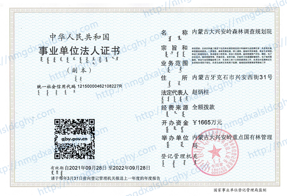 事業(yè)單位法人證書